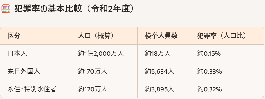 外国人の犯罪率と日本人の犯罪率を比較してみました。