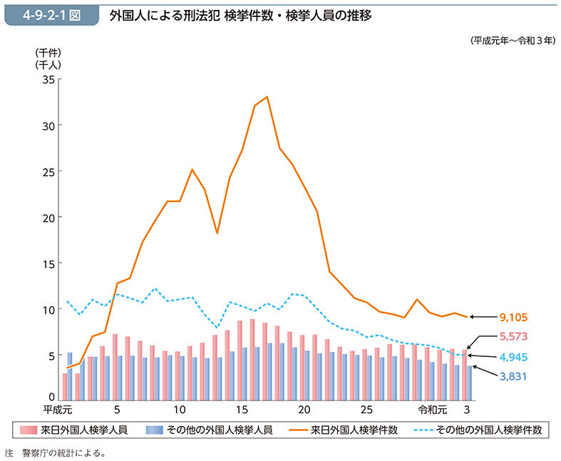 治安が悪化しているか否かは、外国人犯罪だけでなく日本全体の犯罪件数で判断する必要があります。